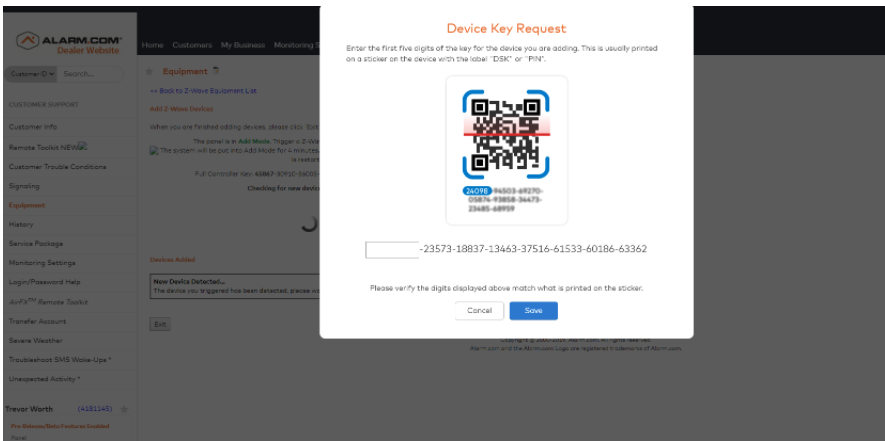 4. Follow the on-screen instructions to add the Smart Thermostat HD to the Z-Wave network (PIN CODE IS LISTED).